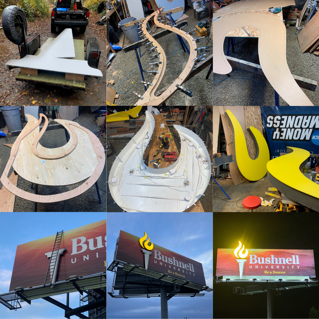Recently Meadow Outdoor installed a huge project that has been months in the making. After bringing in Creative experts and creating custom installations, Bushnell University’s billboard display is complete. With a custom, illuminated pop-out extension towering over the billboard, this display will captivate the imagination of anyone who sees it.