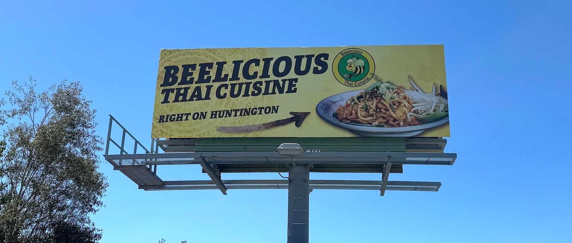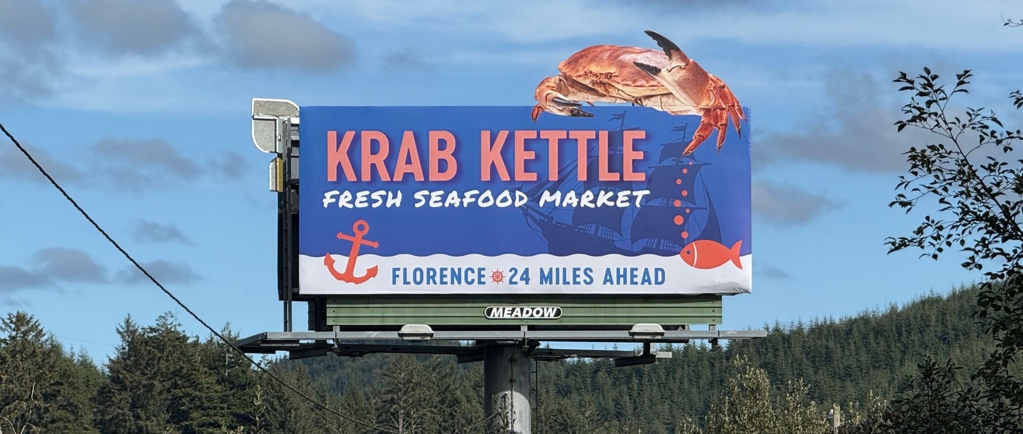 When do you not need a giant crab extension? It would improve any design! This extension was particularly well executed by our crew because of the cut-out section between the bottom of the crab and the top of the billboard. Additionally, most of the billboard is taken up with imagery, not text, as every good billboard should be!
