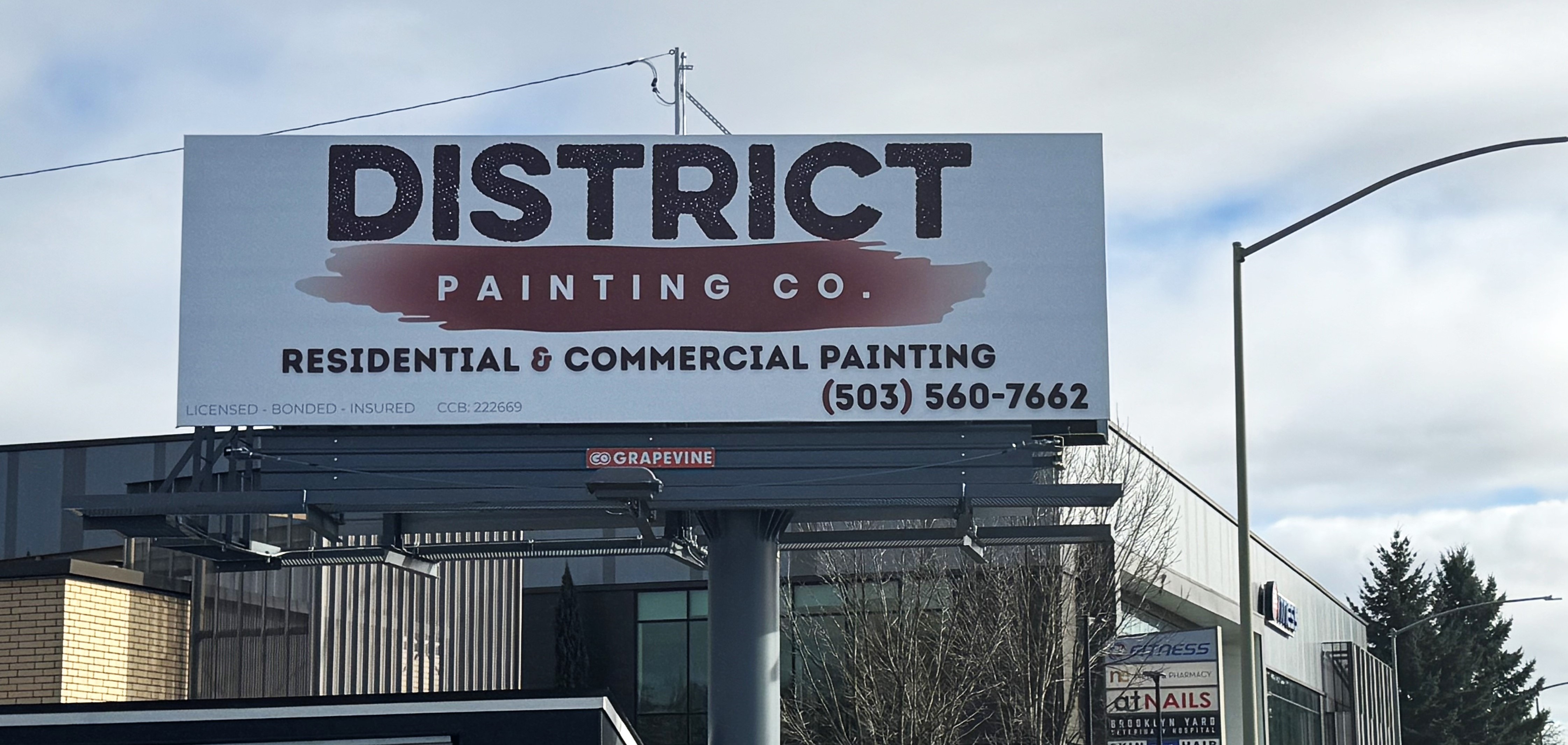 Continuing the trend of communicating to the viewer first and foremost who you are, our artwork for District Painting Co. stamps its identity on this advertisement with authority. This artwork is simple but communicates their brand identity as a laid-back but expert service.