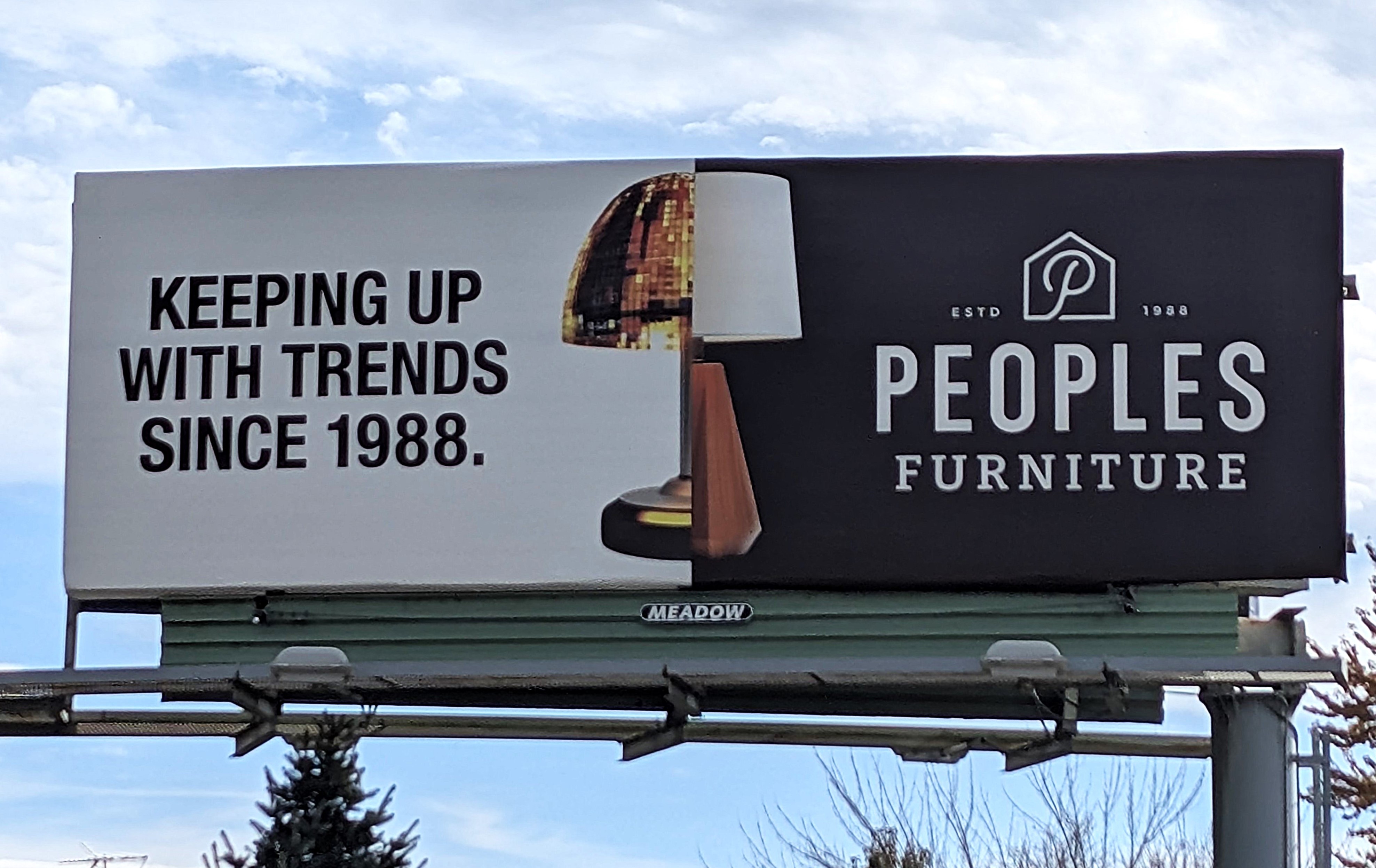 The best billboards do not shy away from negative space, but lean into it as a tool to focus the viewer’s eye on the message, just like this piece does. It also does a great job of literally displaying the message that this company has been around since the 1980s; they were trendy then, and they are trendy now, even though that looks very different.