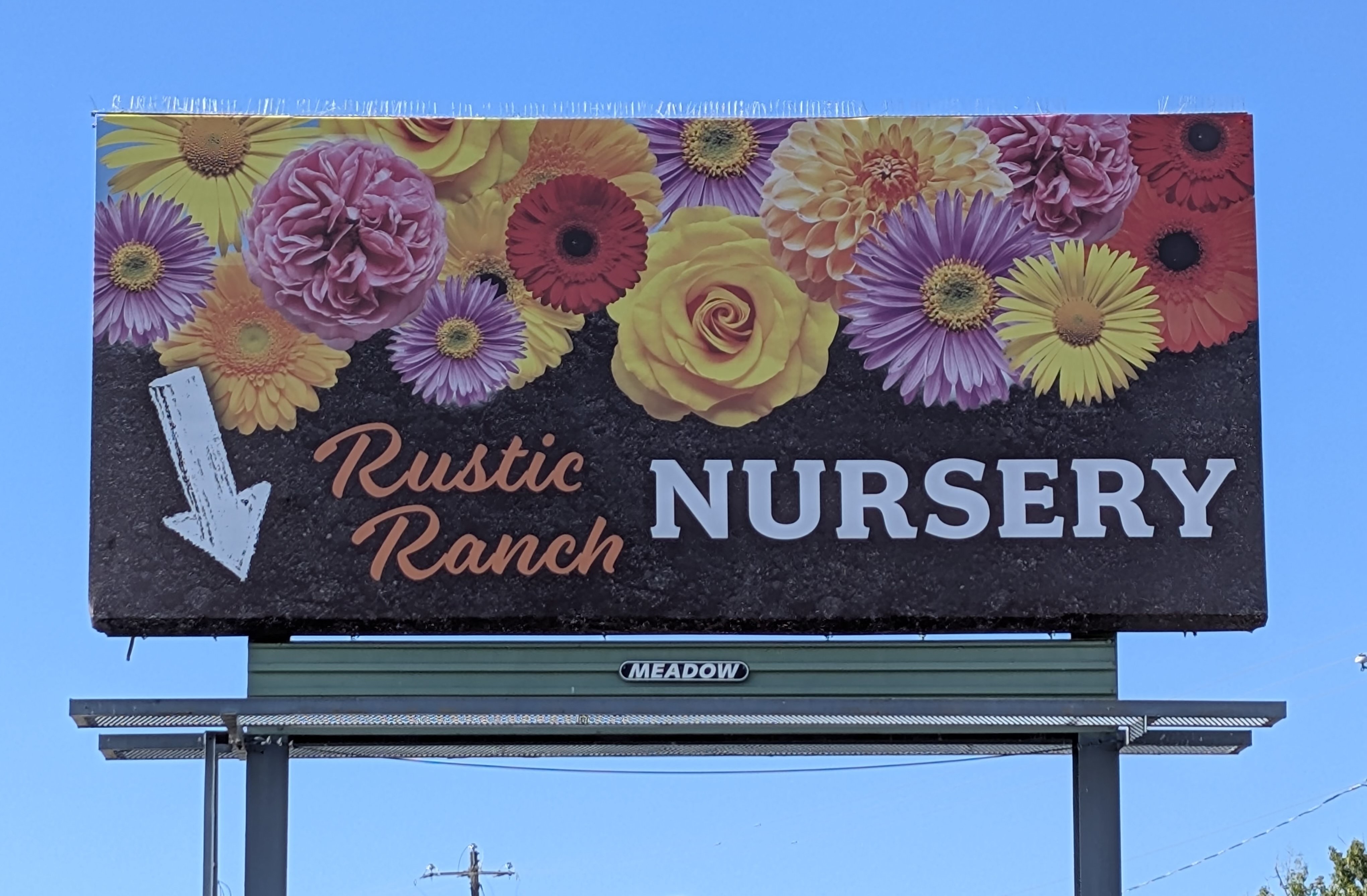 We needed only 3 words in this advertisement to let people know who Rustic Ranch is, what they do, and where to find them! The gorgeous, bright flowers take up more than half the billboard, capturing people’s attention and drawing them in.