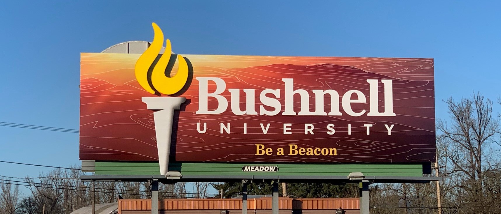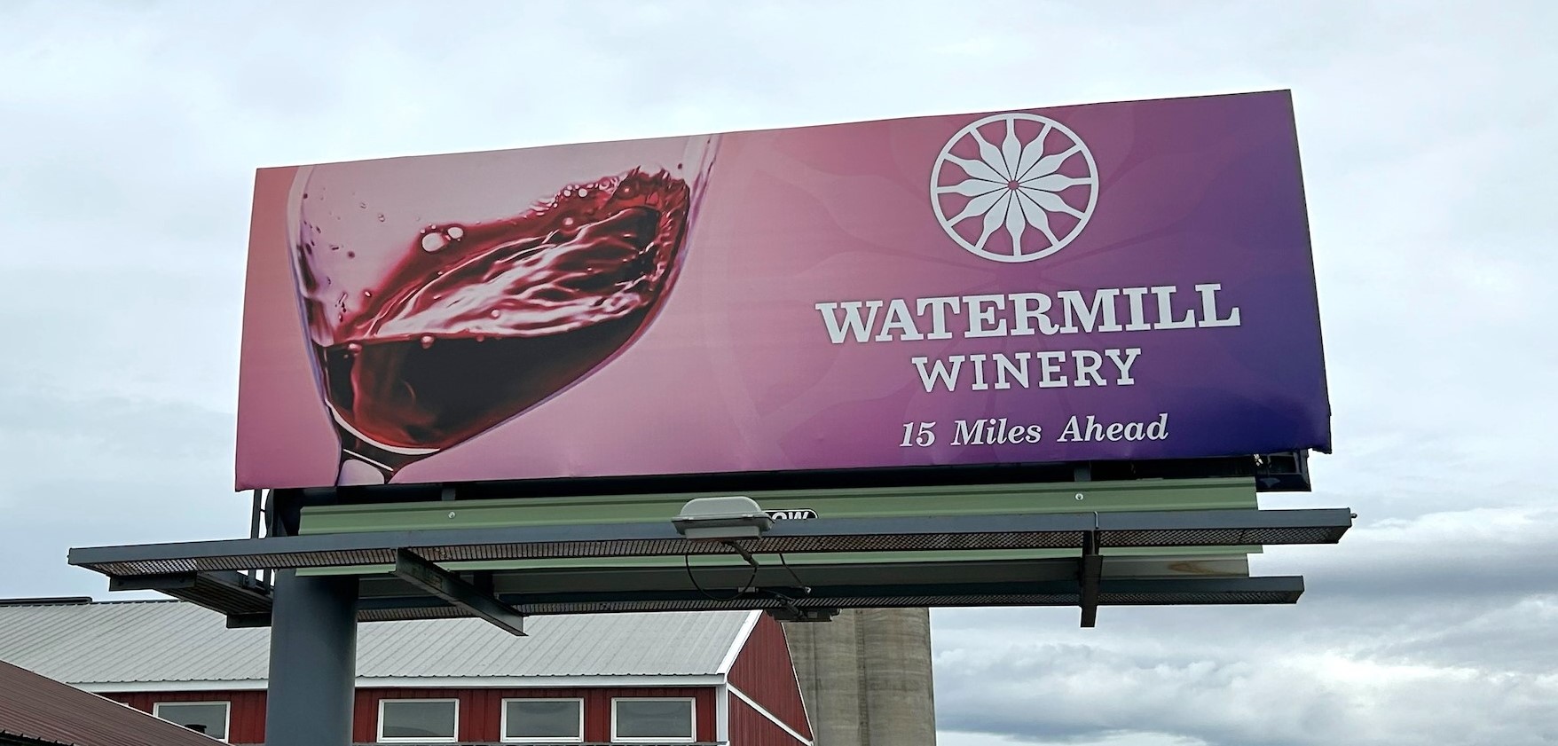 This is a first for Meadow with an extension on a billboard with top-mounted lights! Our install crew worked around it and beautifully executed the vision despite the challenges.