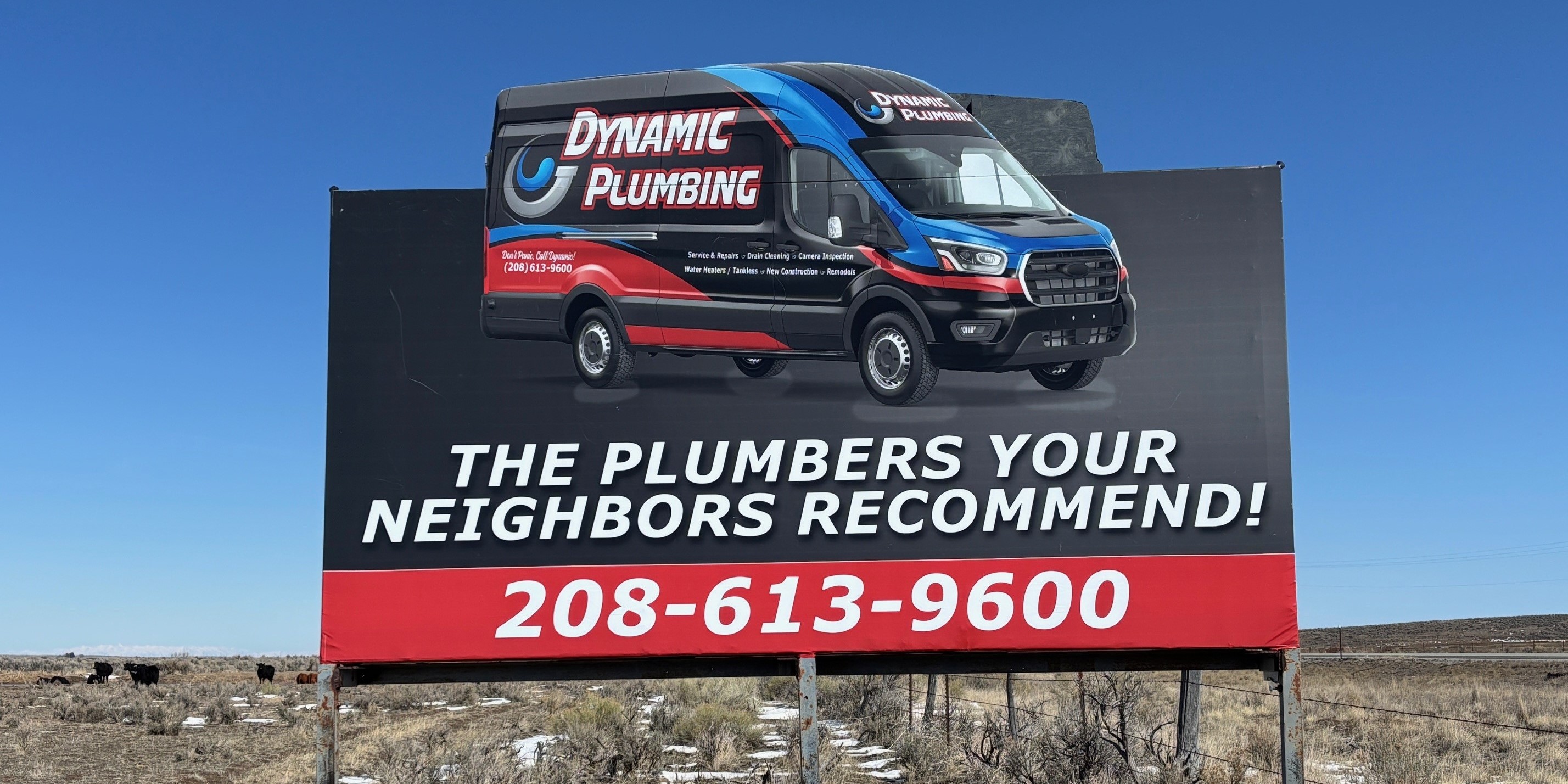 Great artwork for dynamic plumbing with a back-to-back display with extensions. Their high-contrast brand colors are perfect for billboard artwork!