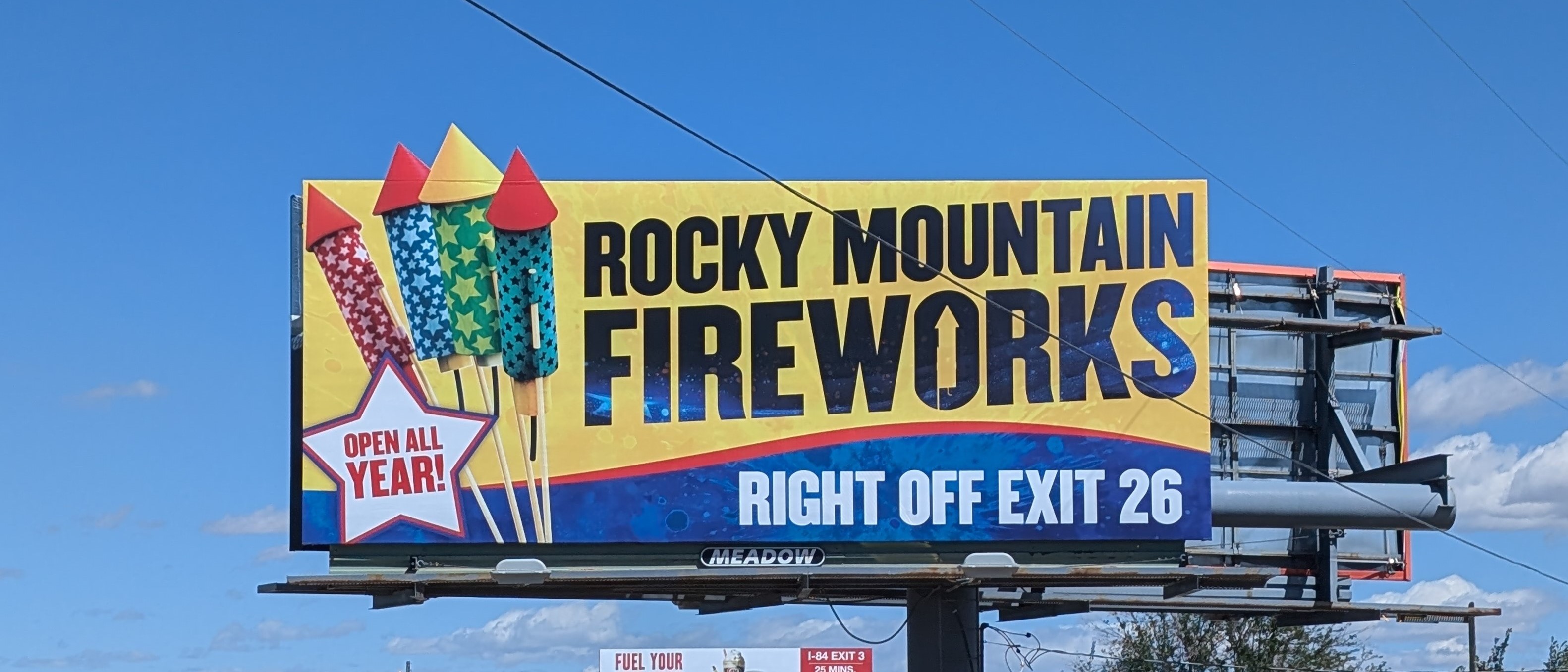 This advertiser updates their display every year before the 4th of July and this year they got a complete make-over. They added a small extension on the left side, some fun texture on the copy and background, and last but not least a firework shaped hole in the ‘O’ in firework!