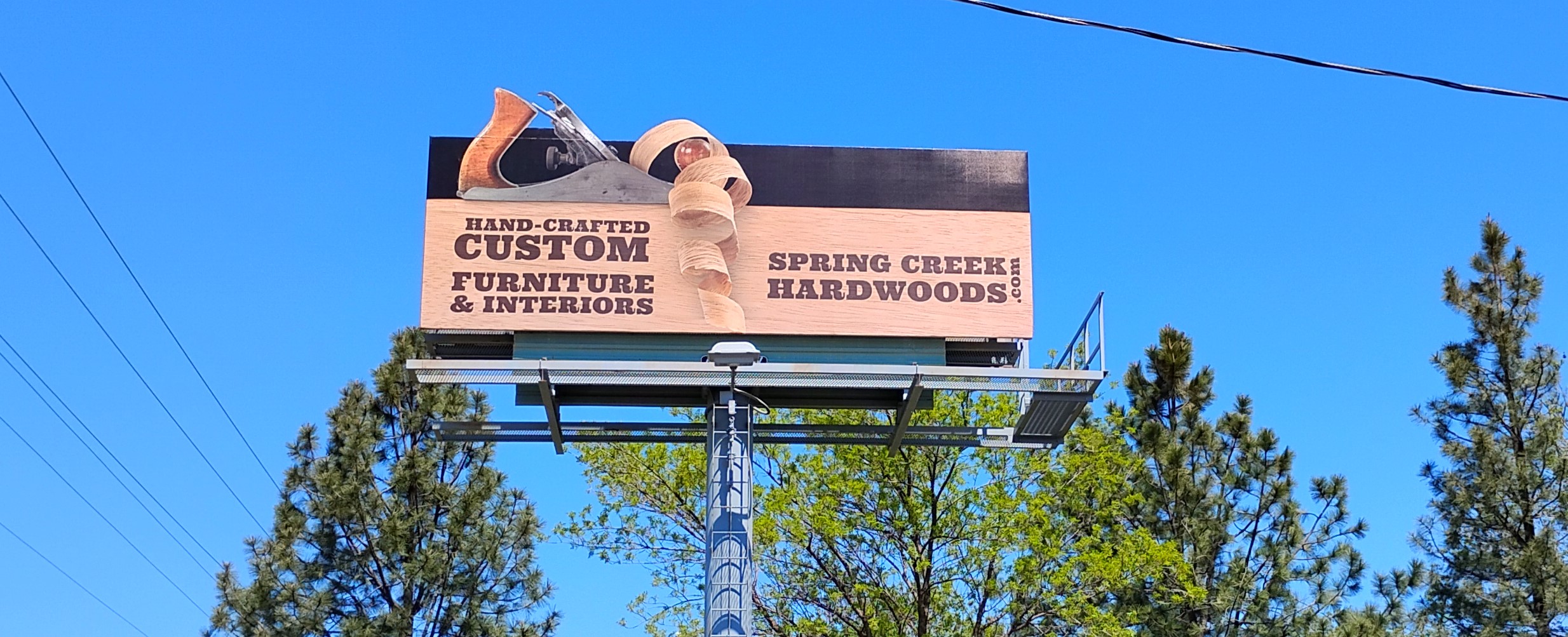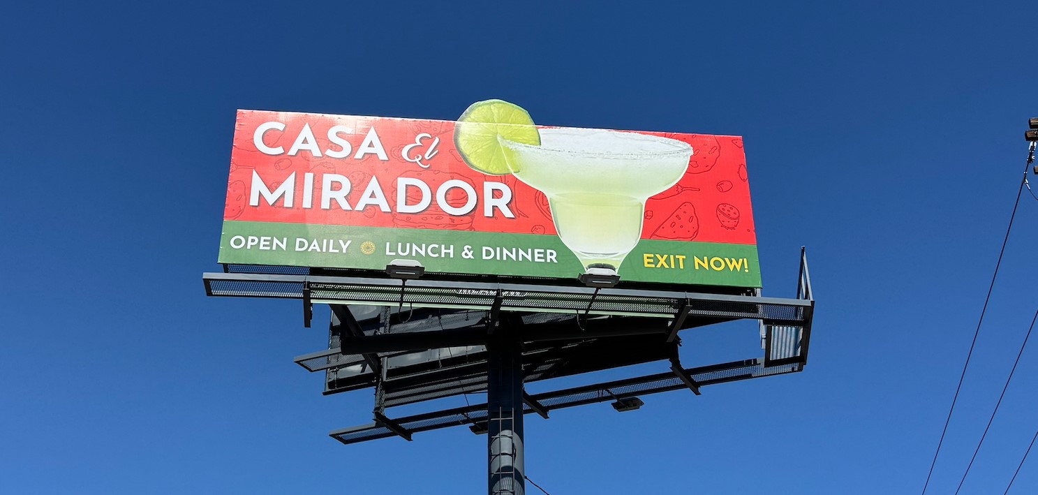 We love this little extension that is both cute and informative! All of the text on this billboard is large, bold, and easily readable from the road. Lastly, the brand colors of this advertiser lend themselves well to outdoor advertising, contrasting with each other and their environment.