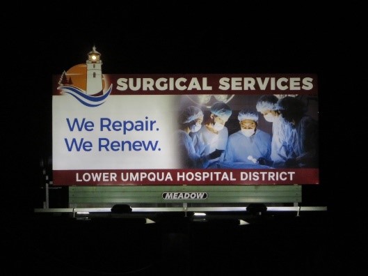 Not all extensions have to be large. For example, this billboard in the Bay Area with Wen Group has a small extension of 12 sq ft. but the impact is meaningful. The extension on the billboard in Reedsport for the Lower Umpqua Hospital District was just over 10sq. ft. and includes a light bulb that shines at night.