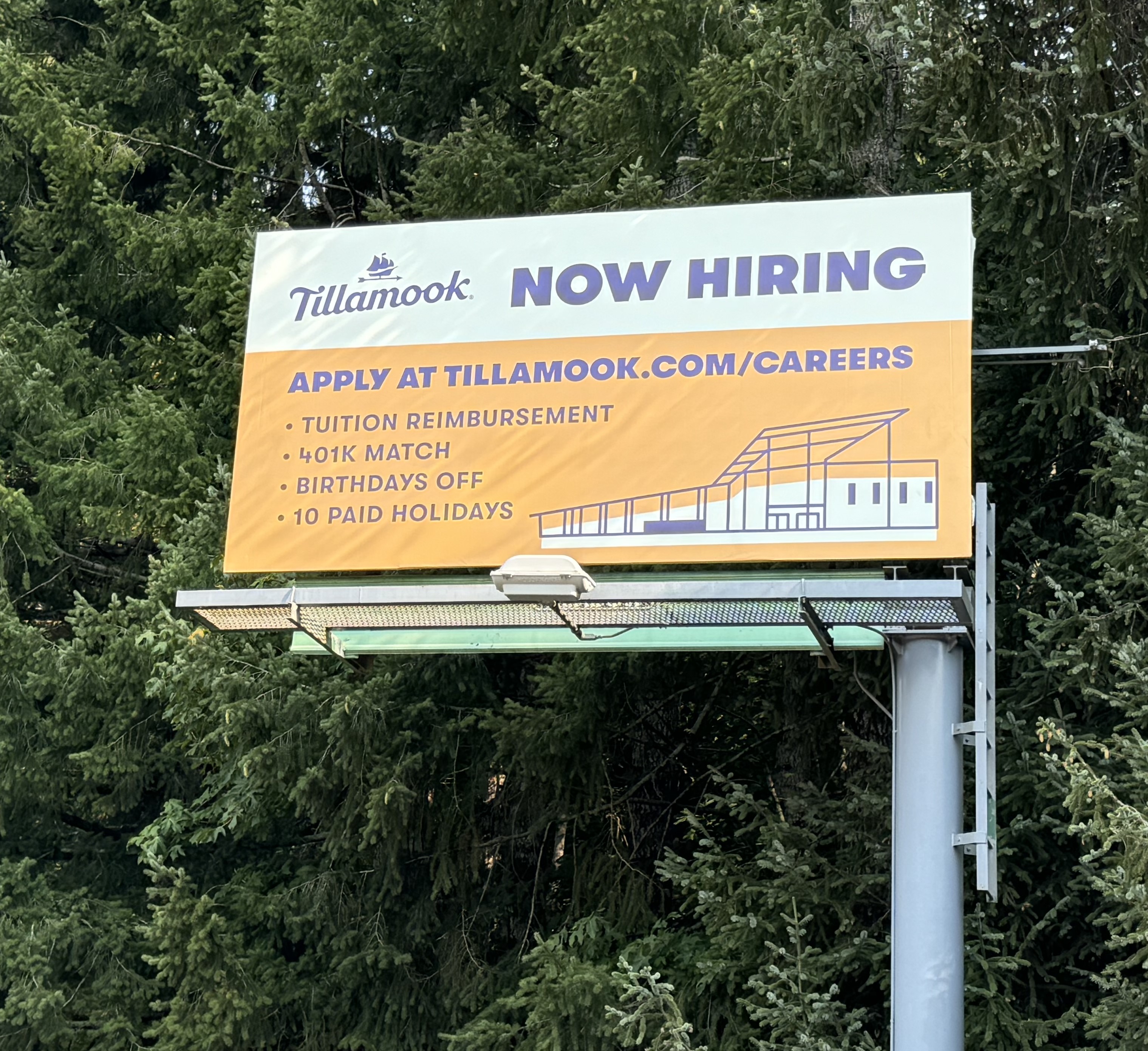 Similarly, low-contrast color combinations might be something a smaller design can get away with, but a billboard cannot. Chick-fil-A’s artwork is effective because red and white contrast well, and Tillamook’s yellow and blue color palette also contrasts very well. However, if a brand’s colors are pink and purple or blue and green ditch them if you can.
